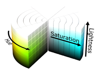 HSL (Hue, Saturation, Lightness) and HSV (Hue, Saturation, Value) are two alternative representations of the RGB color model, they are more closely align with the way human vision perceives color-making attributes. In these models, colors of each hue are arranged in a radial slice, around a central axis of neutral colors which ranges from black at the bottom to white at the top.